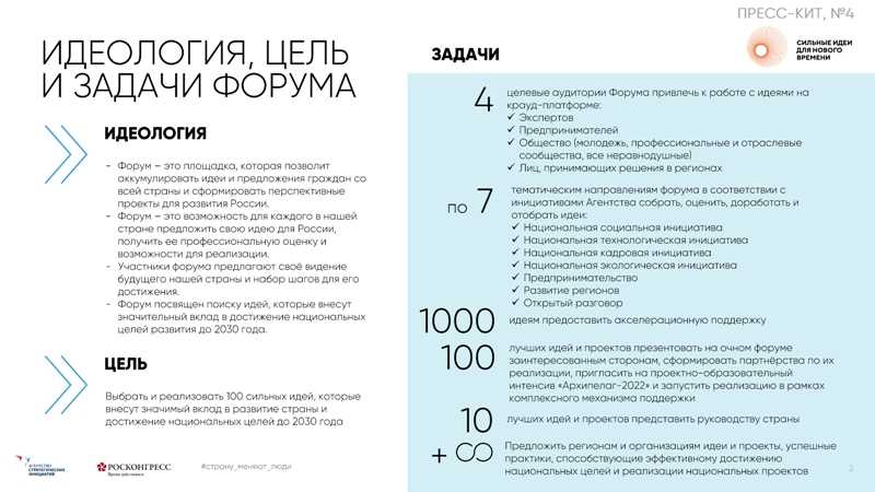 Цель форума - выбрать и реализовать 100 сильных идей, которые внесут значимый вклад в развитие страны.