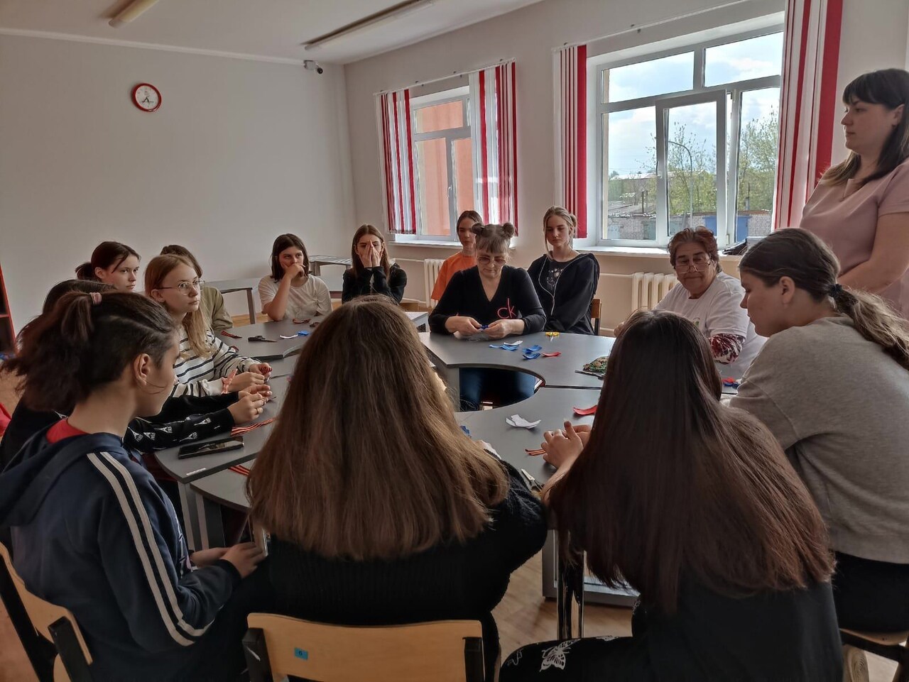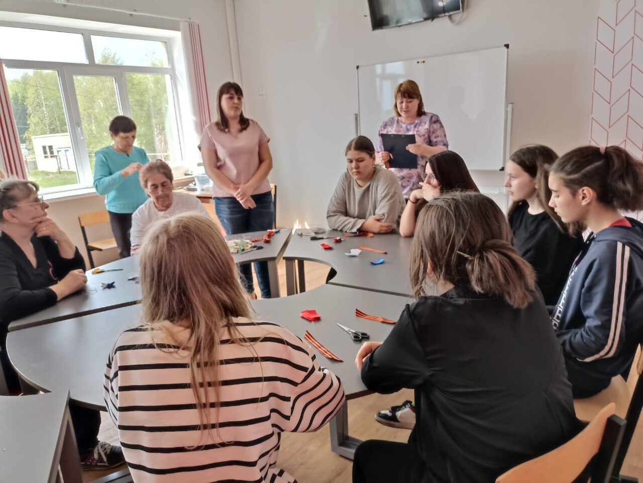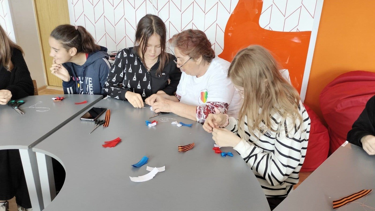 Георгиевская ленточка является символом героизма, воинской доблести и славы защитников России. Всероссийская акция "Георгиевская ленточка" - это эстафета от прошлых поколений к нынешним. Эстафета народной памяти, уважения к подвигам отцов, дедов, прадедов, эстафета готовности защитить свою землю, свой народ, свой язык, своё имя. В преддверии Дня Победы специалисты срочного социального обслуживания и отделения семьи и детей присоединились к данной акции и организовали мастер-класс по изготовлению броши из георгиевской ленточки. Процесс изготовления был показан детям "серебряными волонтёрами". Дети восприняли волонтёров серебряного возраста не как педагогов, а как бабушек, совместно они увлечённо создавали и украшали символ победы цветами в стиле триколор и оформляли бусинками.