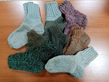 Получатели социальных услуг решили поддержать солдат и за короткое время связали более 20 пар шерстяных носков.