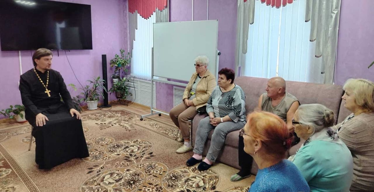 , сегодня для получателей социальных услуг прошла беседа с благочинным Гагинского округа иеромонахом Афанасием